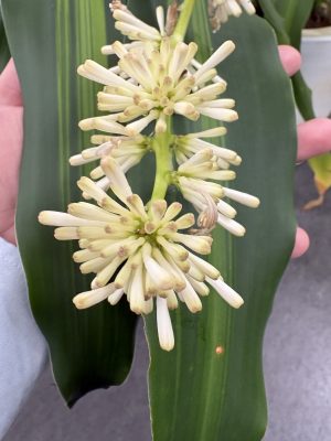 みなさま こんにちは🌞 読谷支店 川代と申します。m(_ _"m) 本日、読谷支店にて 数年~十数年に一度しか咲かない(^▽^)/ 『幸福の木』とも知られている花が咲きました‼ その花の名は、”ドラセナ・フレグランス”🌼 &nb