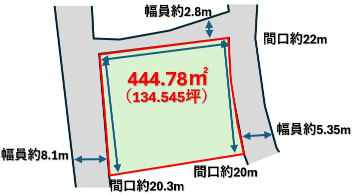 | 土地面積(平米) | 444.78㎡ | 土地面積(坪) | 134.55 坪 |