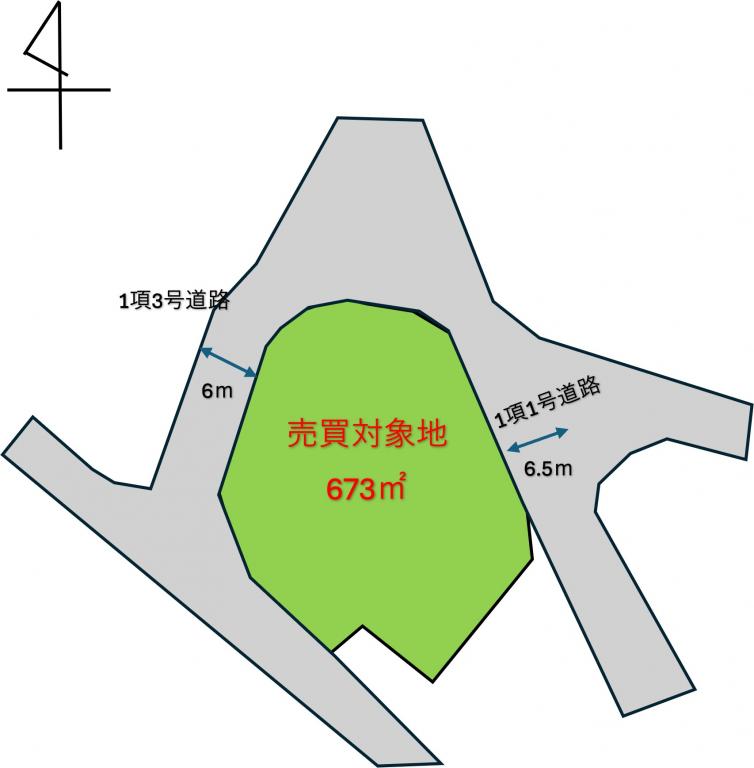 北東/公道/舗装有/間口21.5m/幅員6m/ 北西/公道/舗装有/間口28.5m/幅員6.5m/ |