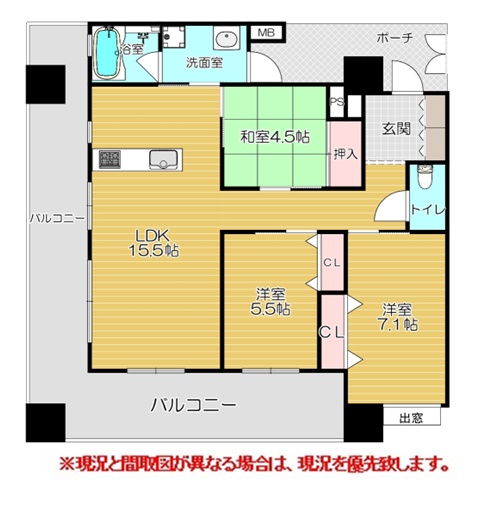 和室1室(4.5畳) 洋室2室(5.5畳/7.1畳) |